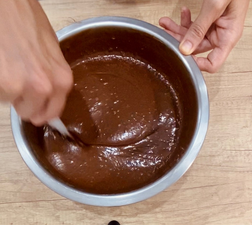 3. Mix the dry and liquid ingredients together until the mixture is creamy.