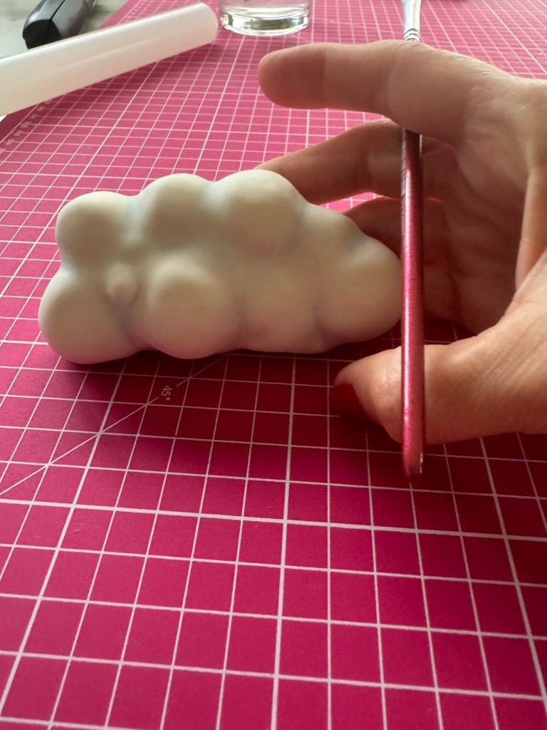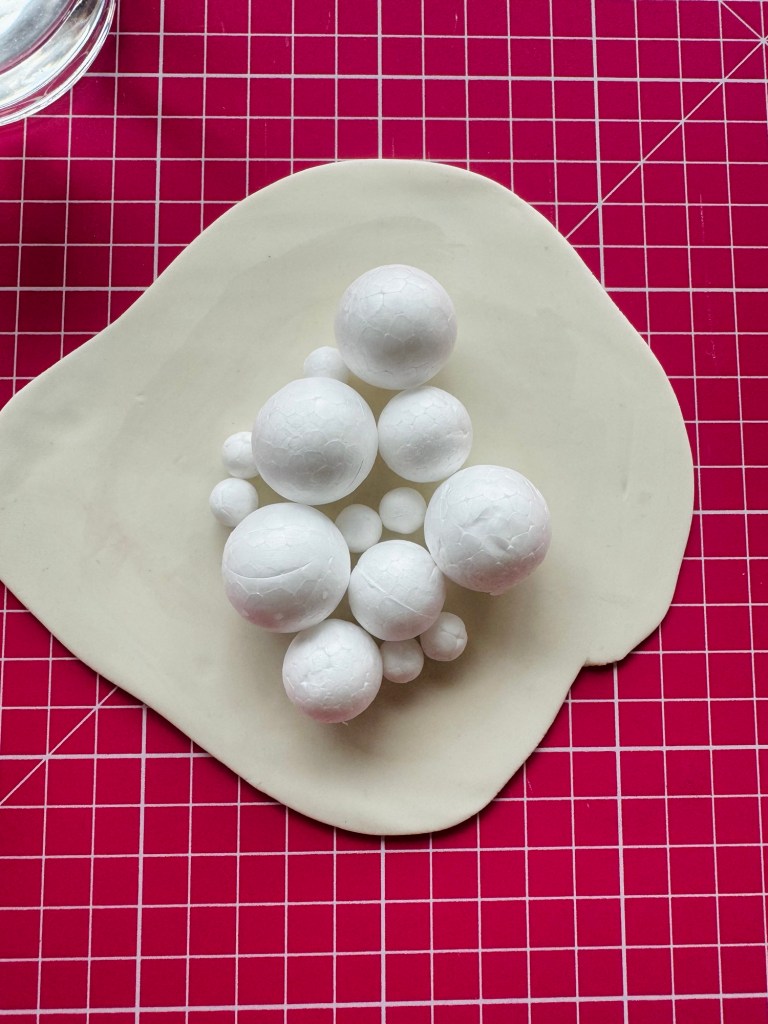 I used softer polystyrene balls because I wanted a flatter surface this time. If you prefer perfect round forms, choose hard polystyrene.