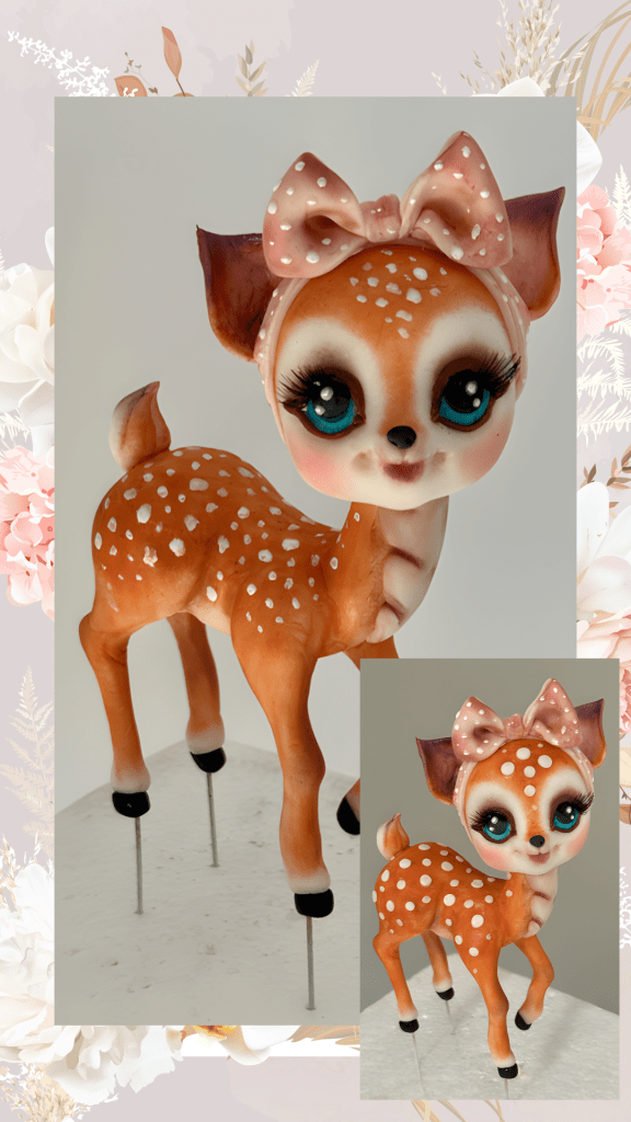 Edible Bambi CakeTopper Figurine Posted bybettinasimon2024.10.02.2024.10.02.Posted inEgyéb kategória Made from Sugar Modeling Paste, but also a great idea for Polymer Clay sculpting. Share Click to share on Pinterest (Opens in new window) Pinterest Like Loading...